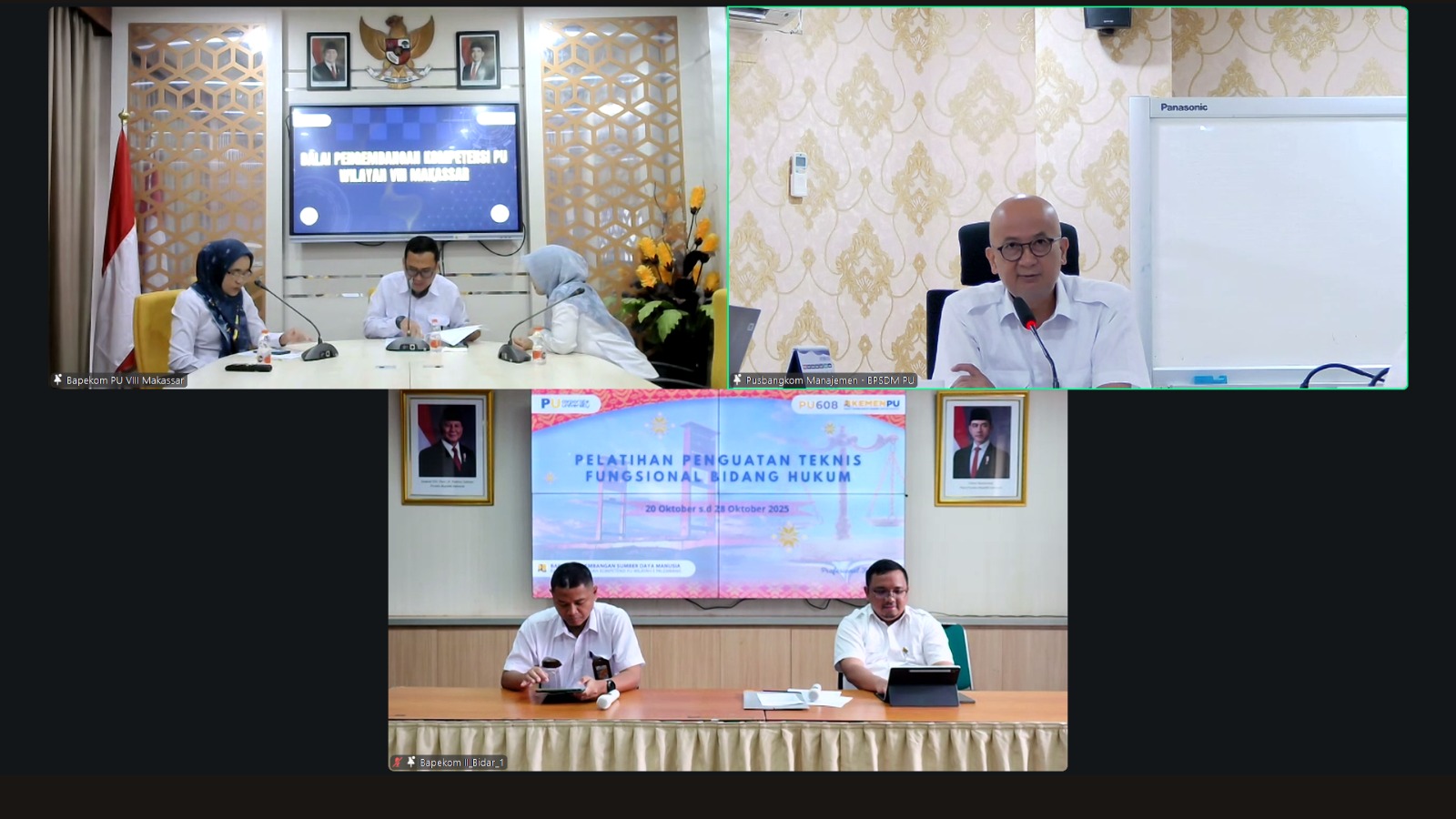 Jakarta, 20 Oktober 2025 — Badan Pengembangan Sumber Daya Manusia (BPSDM) Kementerian Pekerjaan Umum (PU) secara resmi membuka dua pelatihan teknis, yakni Pelatihan Teknis Jabatan Fungsional Bidang Keuangan Anggaran Pendapatan dan Belanja Negara (APBN) Angkatan III dan Pelatihan Penguatan Teknis Fungsional Bidang Hukum Tahun 2025. Kegiatan ini dilaksanakan secara daring dan diikuti oleh pejabat fungsional dari berbagai unit kerja di lingkungan Kementerian PU.