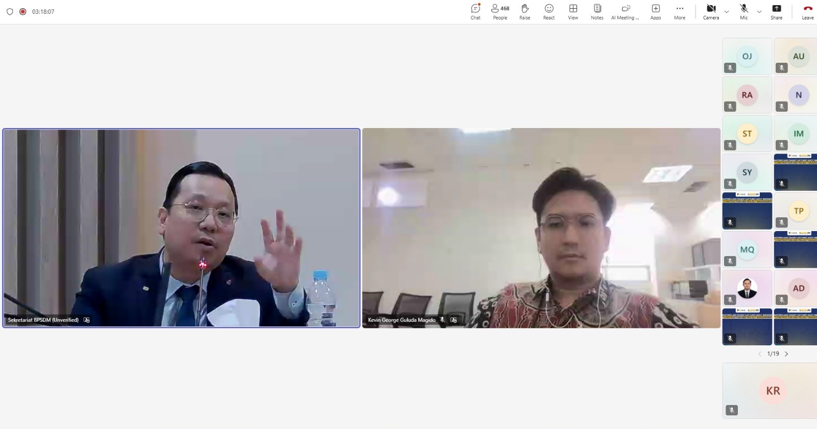 Kegiatan ditutup dengan sesi tanya jawab yang interaktif antara peserta dan narasumber, yang mencerminkan antusiasme tinggi terhadap topik yang diangkat. Diskusi ini menegaskan komitmen BPSDM dalam menghadirkan pembelajaran berkualitas global untuk mencetak ASN unggul, adaptif, dan berdaya saing internasional.
