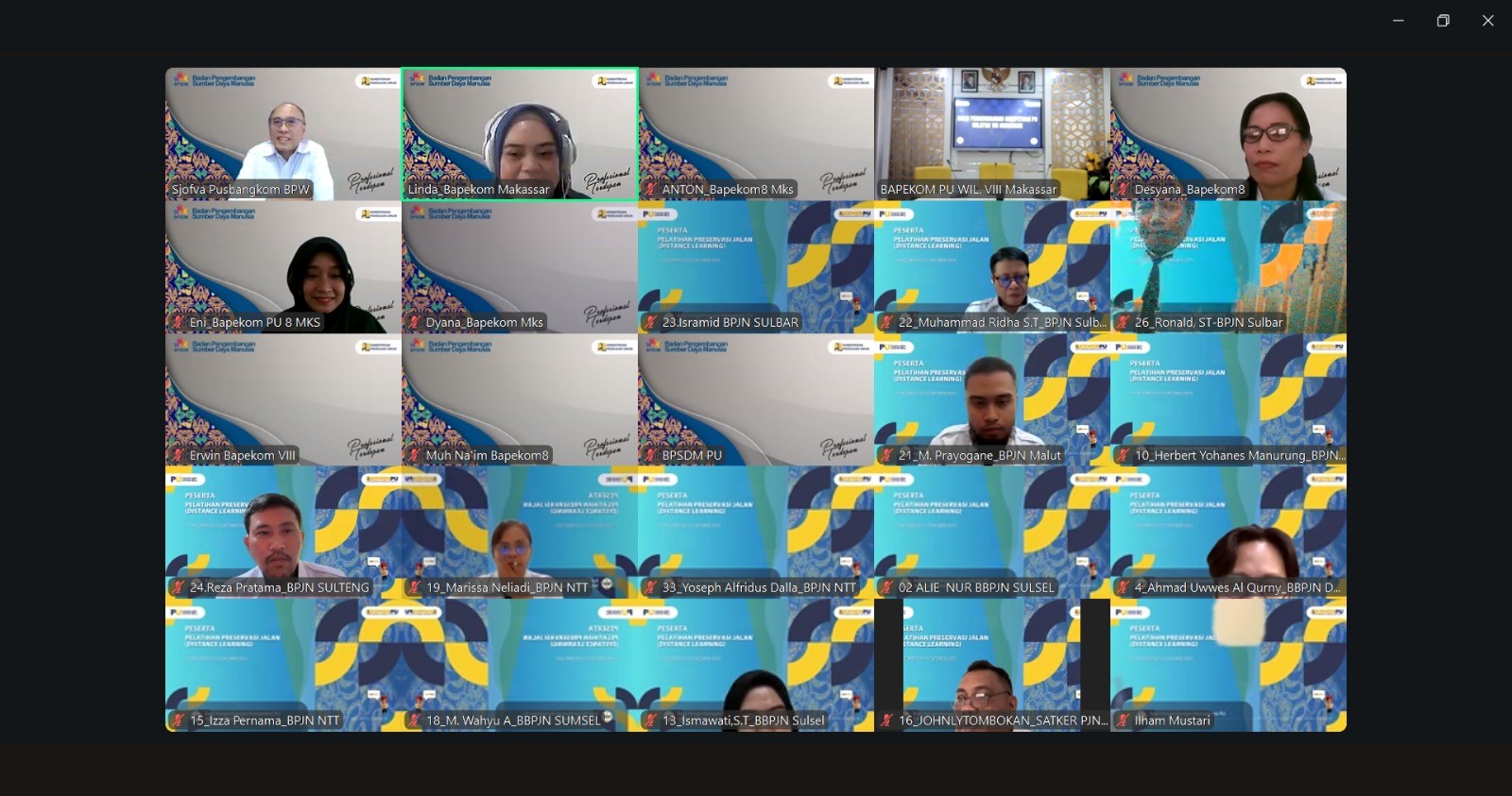 Sebagai bentuk komitmen dalam meningkatkan kompetensi sumber daya manusia di bidang jalan, Badan Pengembangan Sumber Daya Manusia (BPSDM) Kementerian Pekerjaan Umum (PU) melalui Balai Pengembangan Kompetensi (Bapekom) PU Wilayah VIII Makassar menyelenggarakan Pelatihan Preservasi Jalan secara distance learning pada 13–23 Oktober 2025.