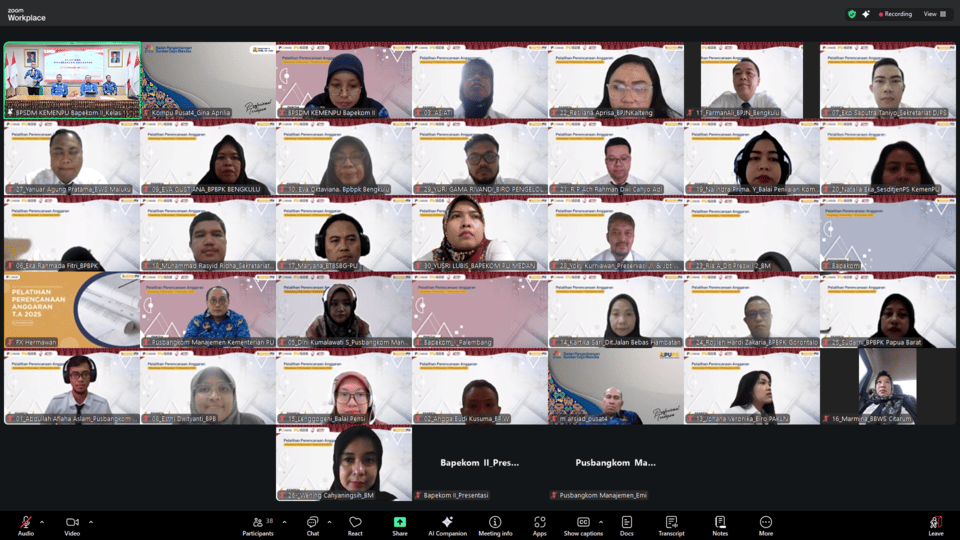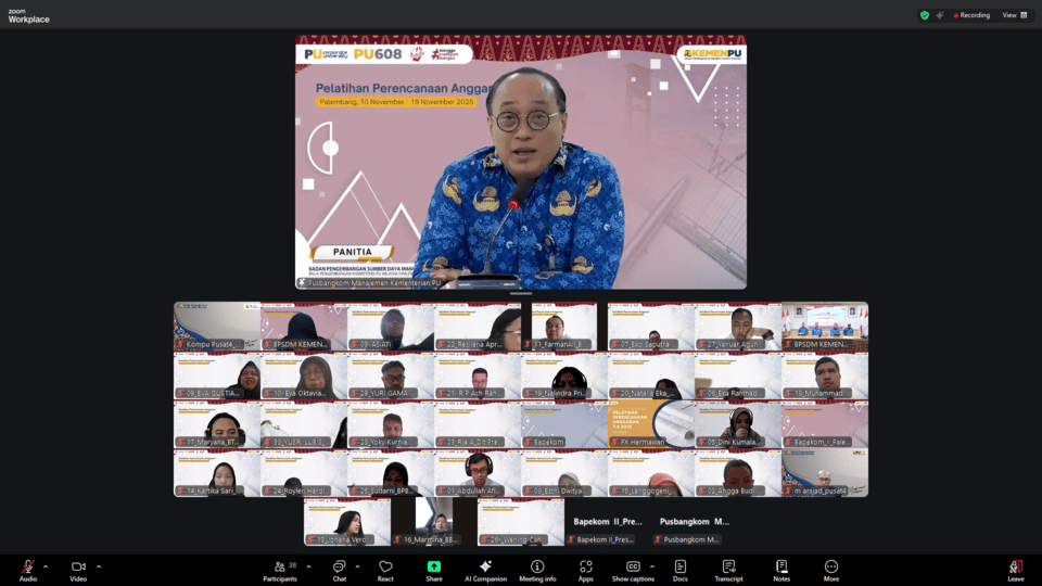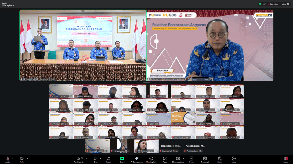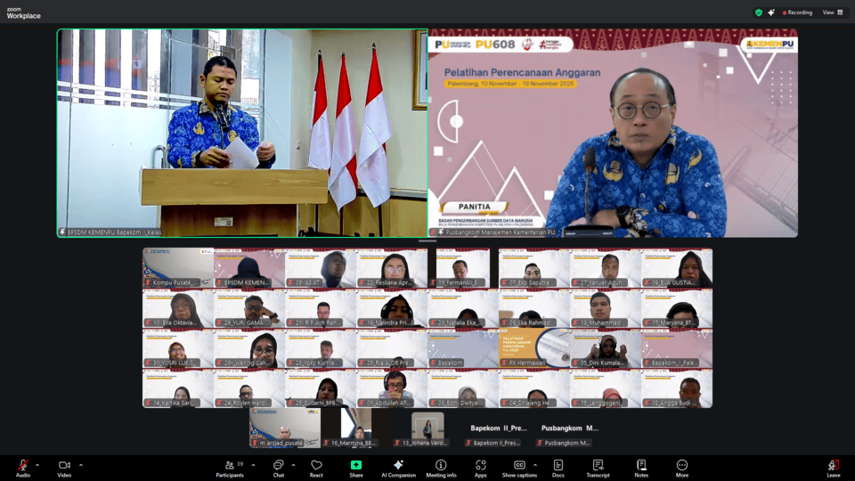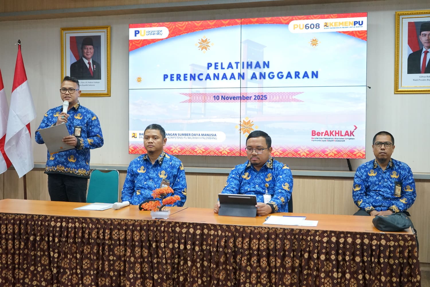 Palembang, 10 November 2025 — Badan Pengembangan Sumber Daya Manusia (BPSDM) Kementerian Pekerjaan Umum (PU) melalui Balai Pengembangan Kompetensi (Bapekom) PU Wilayah II Palembang menyelenggarakan Pelatihan Perencanaan Anggaran secara distance learning pada Senin (10/11).