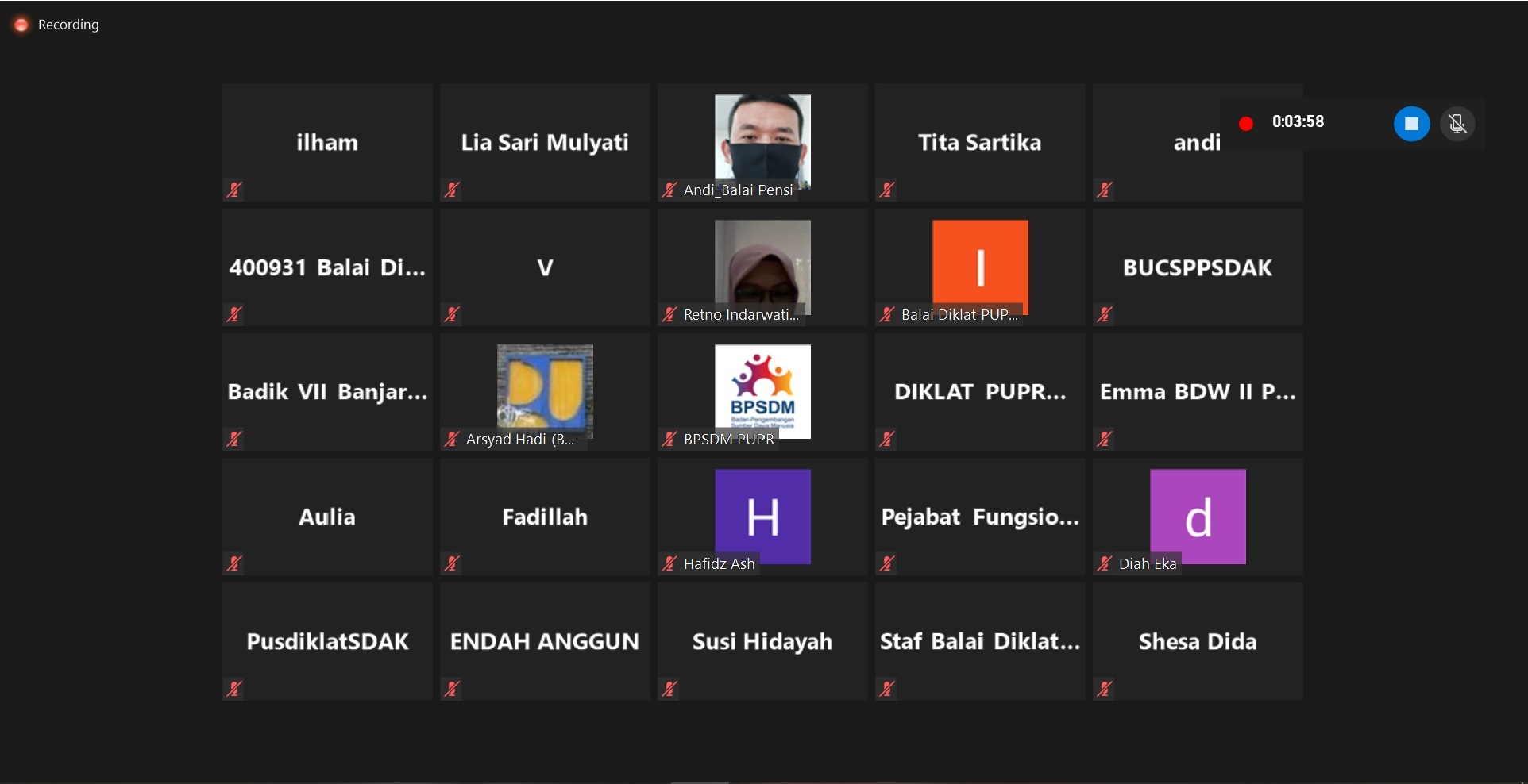 Jakarta, 18 Juni 2020 – Dalam rangka tertib administrasi pelaksanaan anggaran 2020 selama fase new normal, Badan Pengembangan Sumber Daya Manusia (BPSDM) Kementerian Pekerjaan Umum dan Perumahan Rakyat (PUPR) mengadakan Sosialisasi Pelaksanaan Anggaran 2020 bersama semua unit kerja di Lingkungan BPSDM PUPR melalui konferensi video, Kamis (18/6).