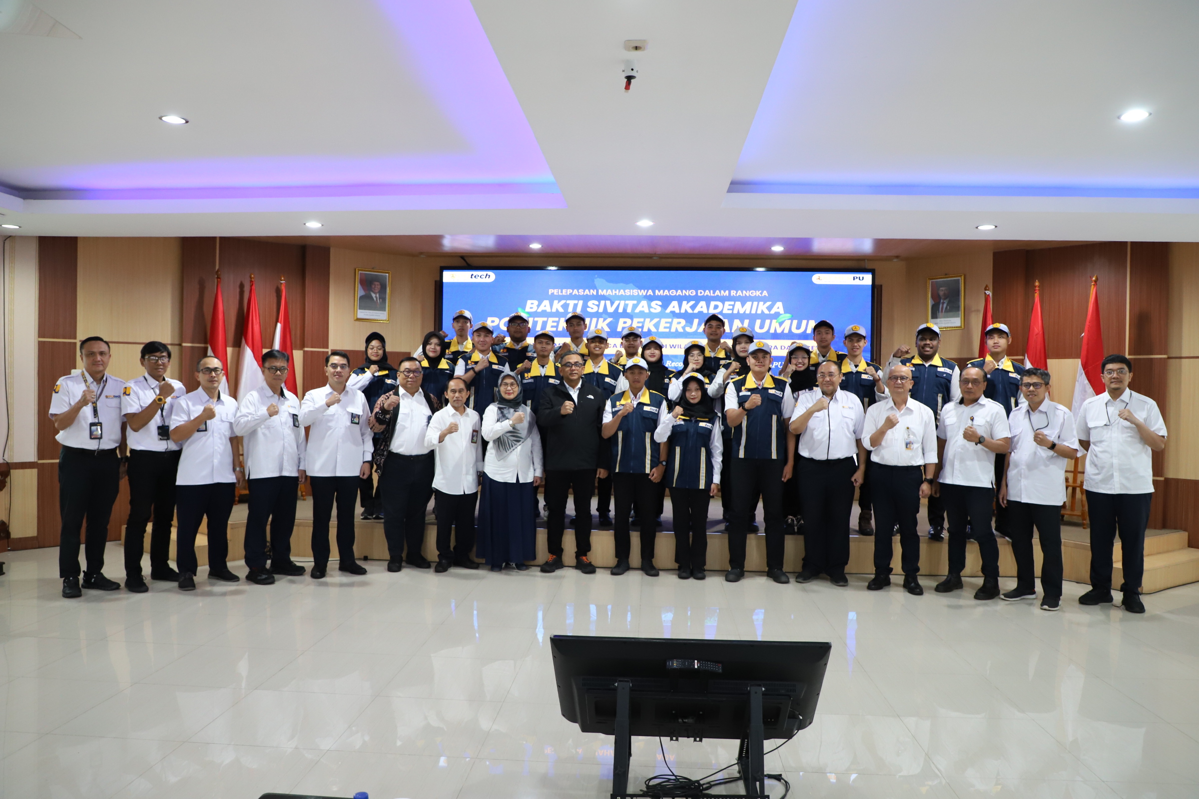 Pelepasan mahasiswa magang Politeknik PU dilaksanakan pada Kamis (22/1/2026) di Balai Pengembangan Kompetensi Wilayah III Jakarta. Keterlibatan mahasiswa ini menjadi bagian dari kontribusi nyata Kementerian PU dalam percepatan pemulihan infrastruktur dan layanan dasar di wilayah terdampak bencana.