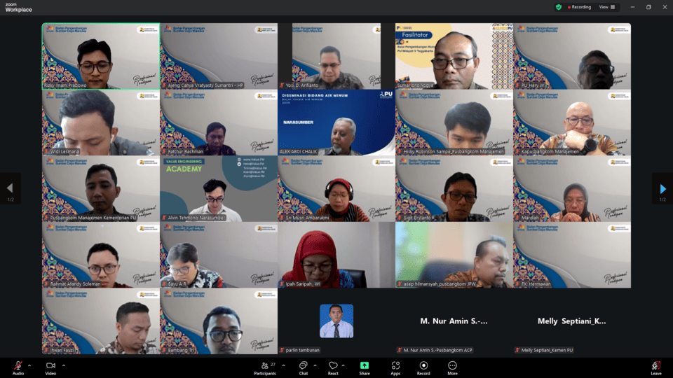 Jakarta, 31 Oktober 2025 — Badan Pengembangan Sumber Daya Manusia (BPSDM) Kementerian Pekerjaan Umum (PU) melalui Pusat Pengembangan Kompetensi (Pusbangkom) Manajemen menyelenggarakan Knowledge Sharing Forum (KSF) Materi Pelatihan Rekayasa Nilai (Value Engineering) secara daring pada Jumat (31/10).