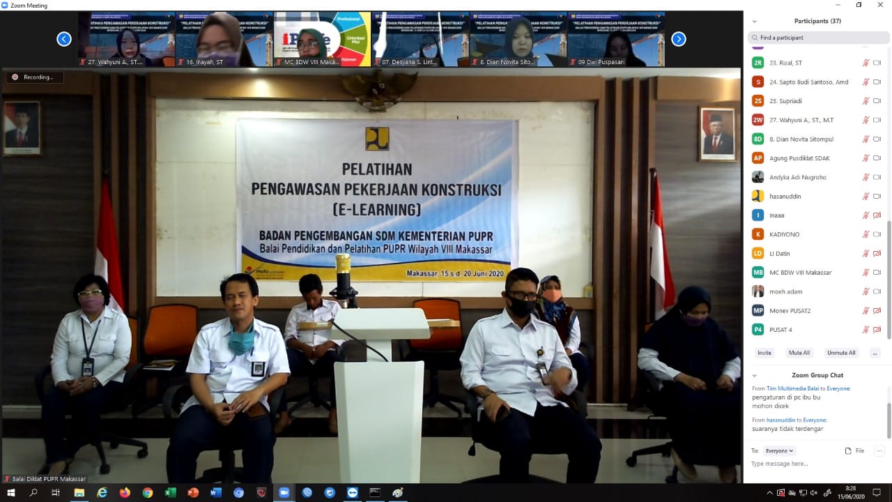 Minggu, 20 Juni 2020 - Penyediaan infrastrukstur bidang pekerjaan umum dan perumahan rakyat harus melalui proses penyelenggaraan konstruksi, dari mulai tahap perencanaan, pelaksanaan beserta pengawasan, operasi, serta pemeliharaannya. Demikian pidato Kepala Pusbangkom Manajemen dan Pengembangan, Badan Pengembangan Sumber Daya Manusia (BPSDM) Moeh. Adam, melalui konferensi video dari Jakarta, Minggu (20/6) pada penutupan Pelatihan Pengawasan Pekerjaan Konstruksi yang dilaksanakan secara virtual dari Balai Diklat Wilayah VIII Makassar.