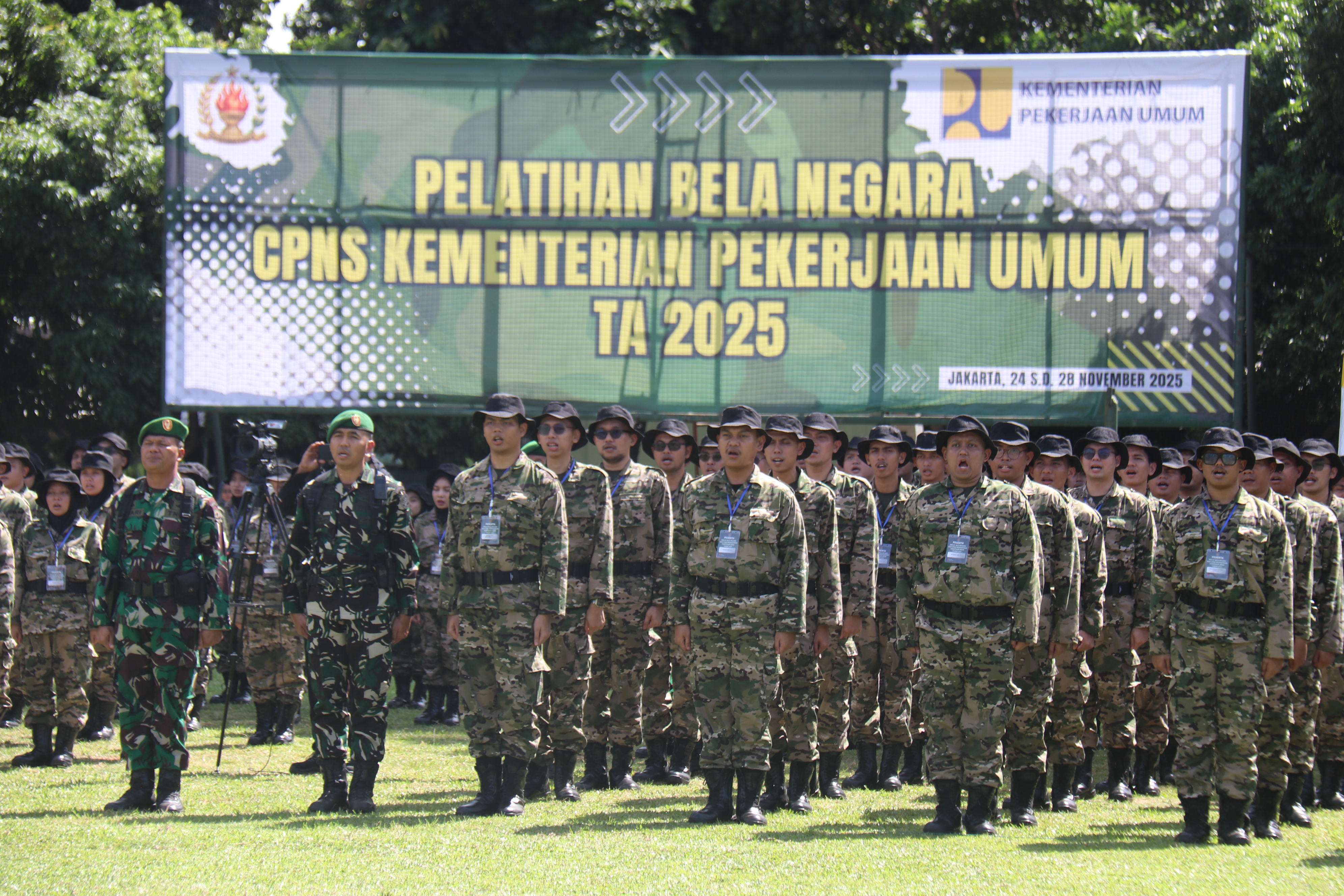 Pelatihan Bela Negara berlangsung pada 24–28 November 2025 dan diikuti oleh 1.730 CPNS Kementerian PU dari enam Balai Pengembangan Kompetensi (Bapekom):