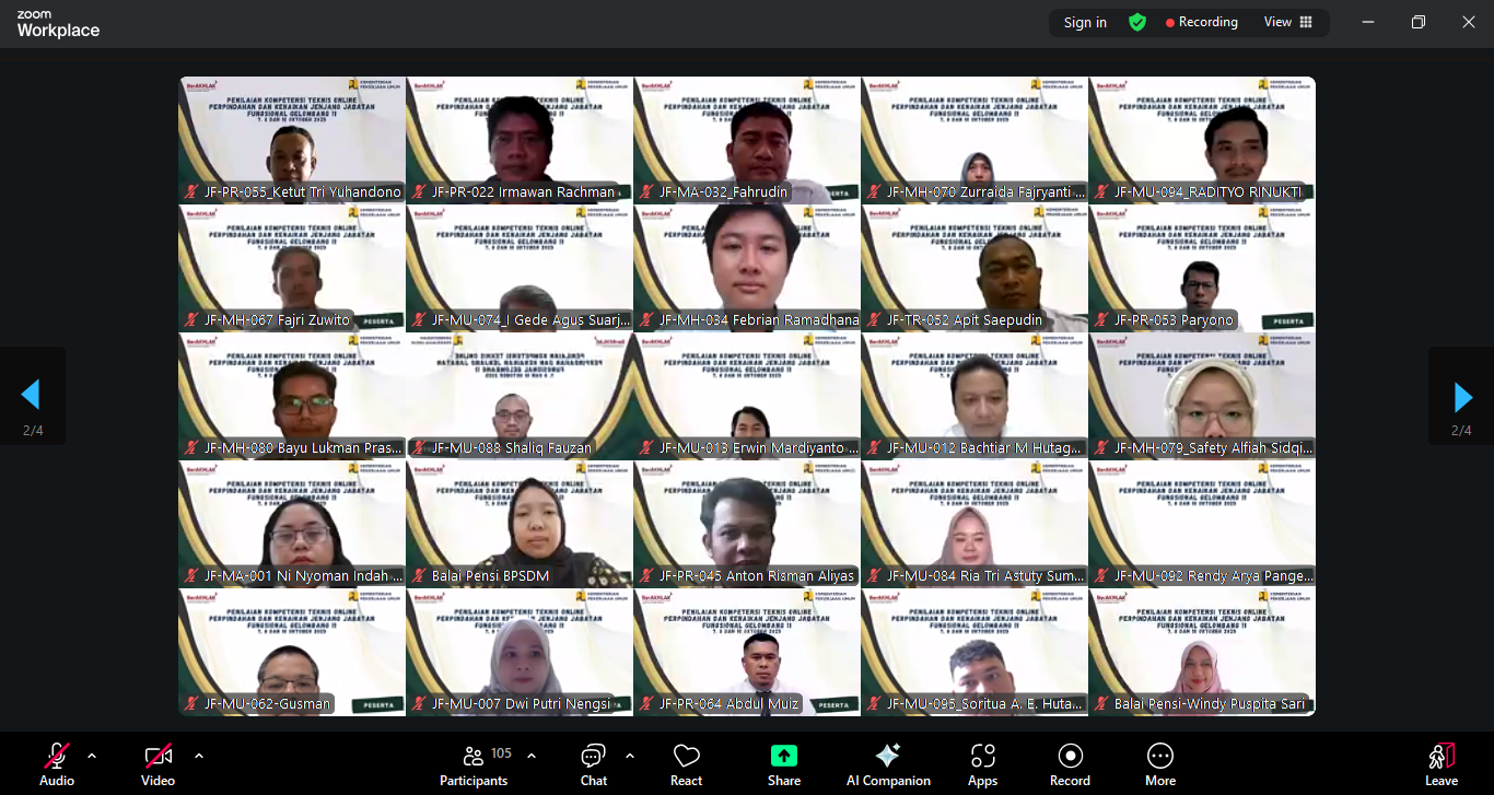 Pusat Pengelolaan Talenta melalui Balai Penilaian Kompetensi kembali menyelenggarakan Pelaksanaan kegiatan Penilaian Kompetensi Teknis Online untuk Usulan Perpindahan dan Kenaikan Jenjang Jabatan Fungsional Gelombang 11. Kegiatan ini dilaksanakan selama 3 (tiga) hari, yaitu mulai hari ini Selasa, 7 Oktober 2025 sampai dengan Jumat, 10 Oktober 2025.