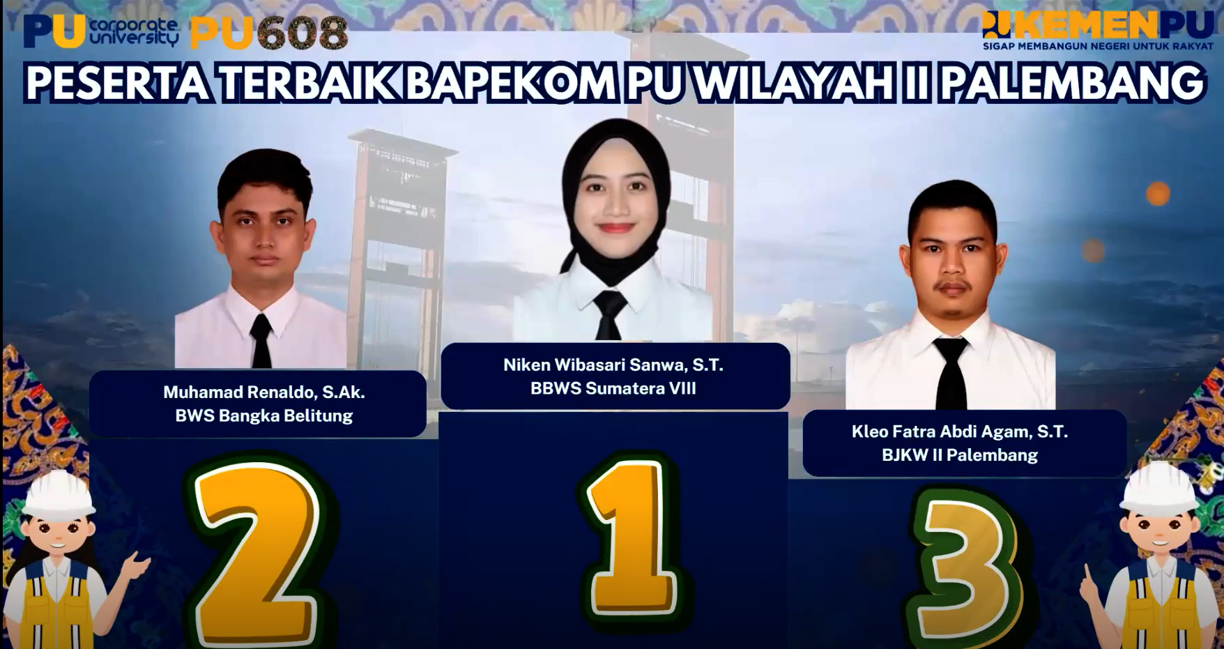 - Peringkat ke-1 : Niken Wibasari Sanwa, S.T. dari BBWS Sumatera VIII