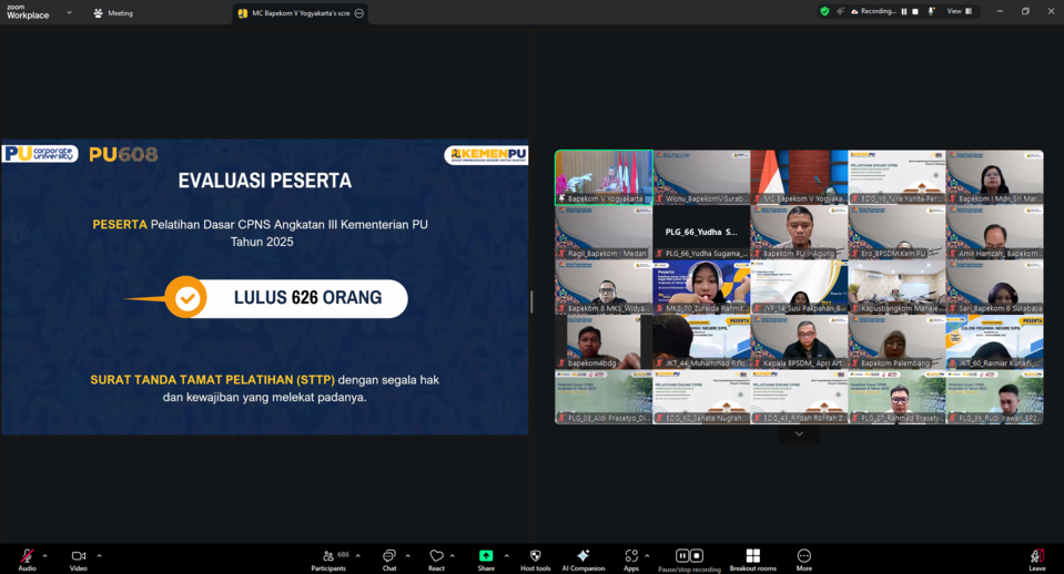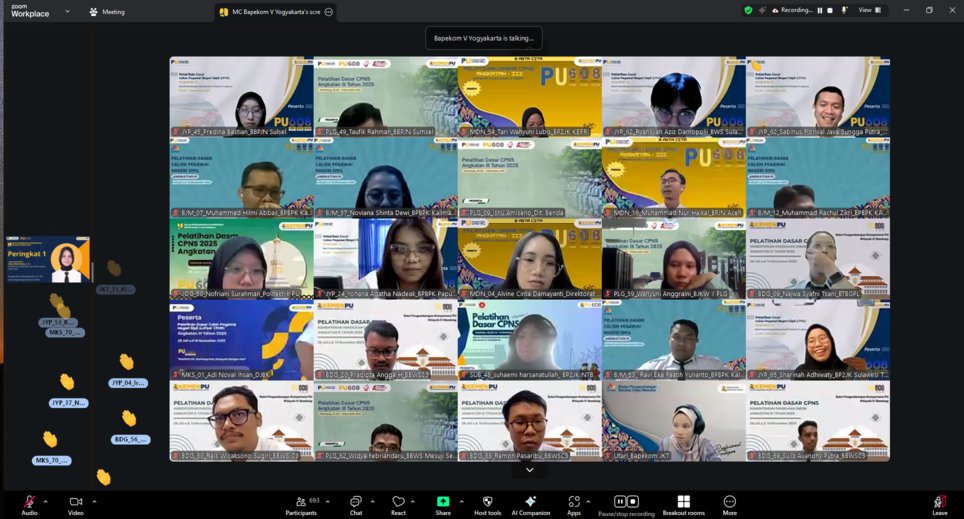Acara ditutup dengan pembacaan pantun yang mengajak seluruh CPNS untuk menjadi aparatur negara yang berintegritas dan berdedikasi bagi Kementerian Pekerjaan Umum.