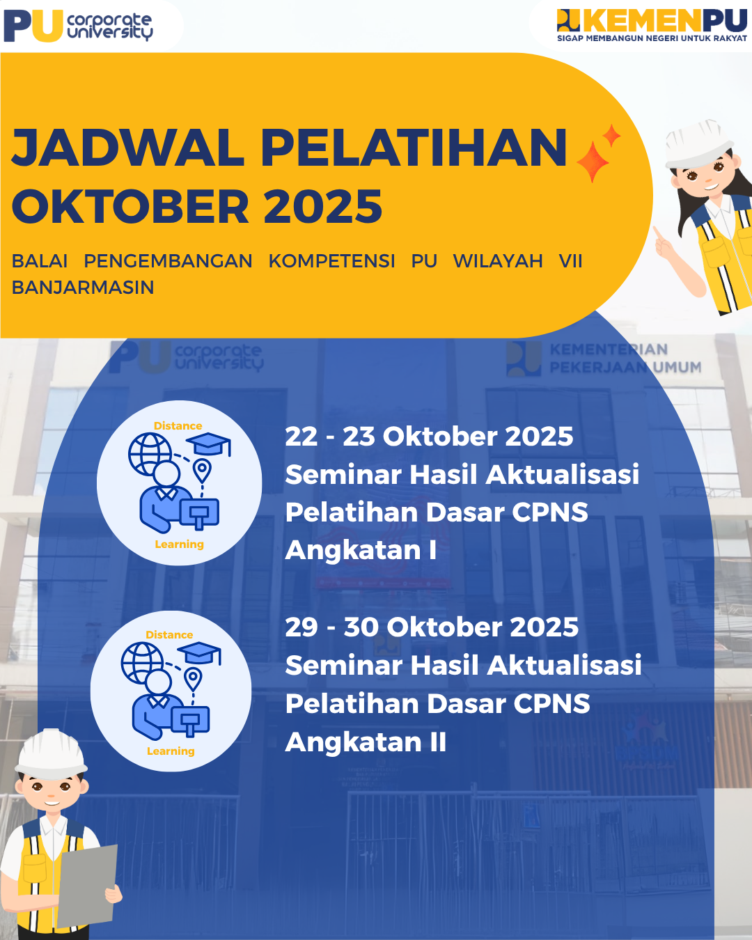 Jadwal Pelatihan Bulan Oktober 2025 Bapekom PU Wilayah VII Banjarmasin