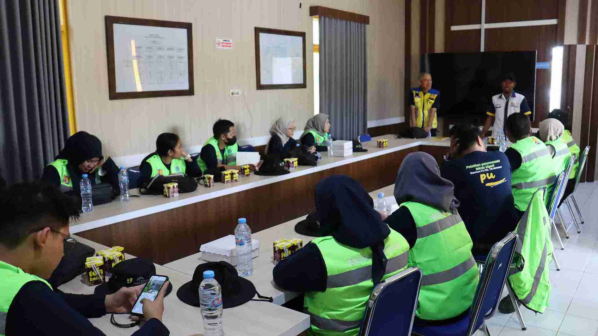 Dalam kegiatan tersebut, pemateri bersama fasilitator pelatihan memberikan penjelasan teknis terkait fungsi bendungan, perencanaan jaringan distribusi air, serta strategi pemanfaatan sumber daya air yang berkelanjutan. Peserta terlihat antusias mengikuti setiap tahapan peninjauan, mengajukan pertanyaan, serta melakukan pengamatan detail pada aspek perencanaan dan konstruksi.