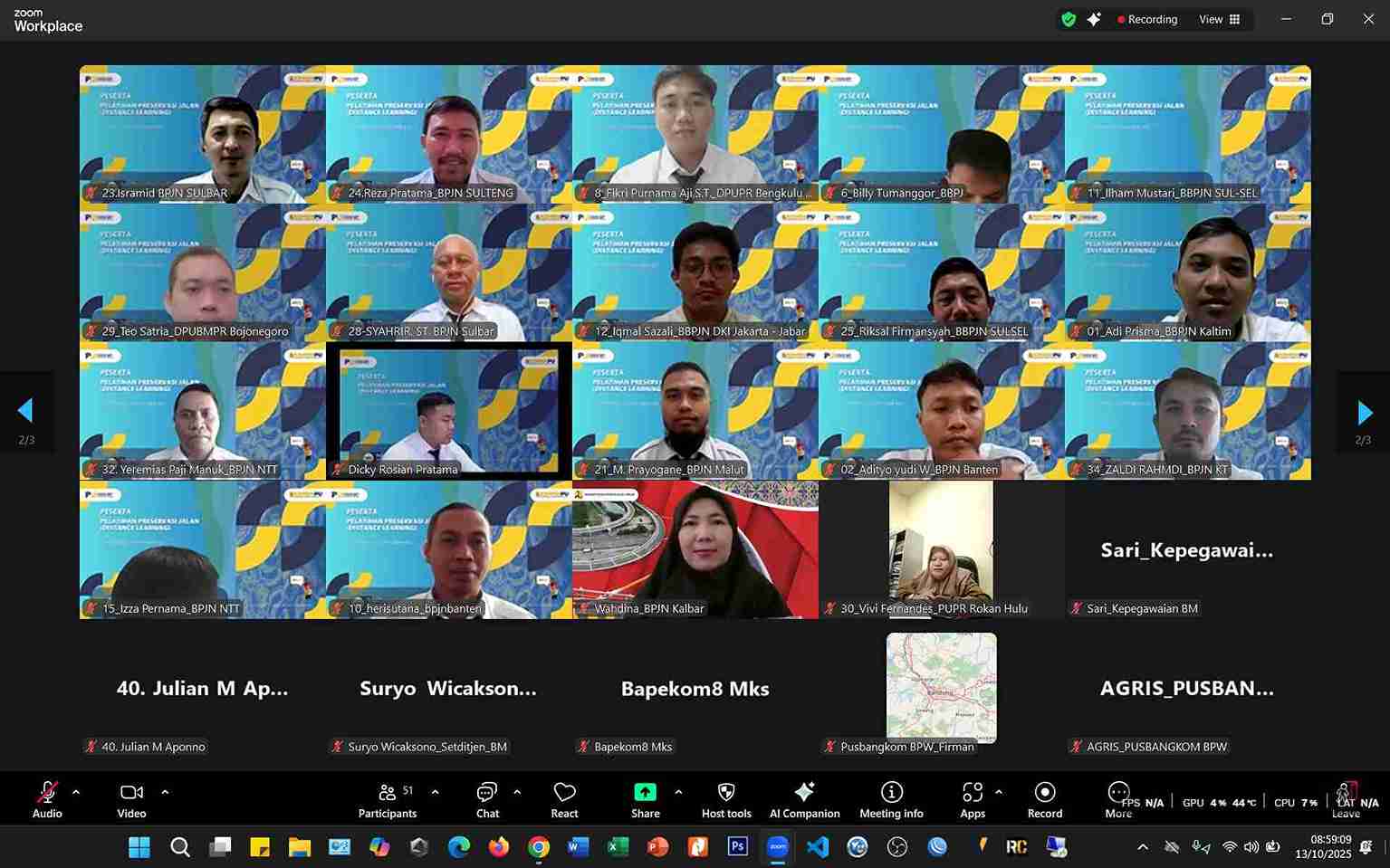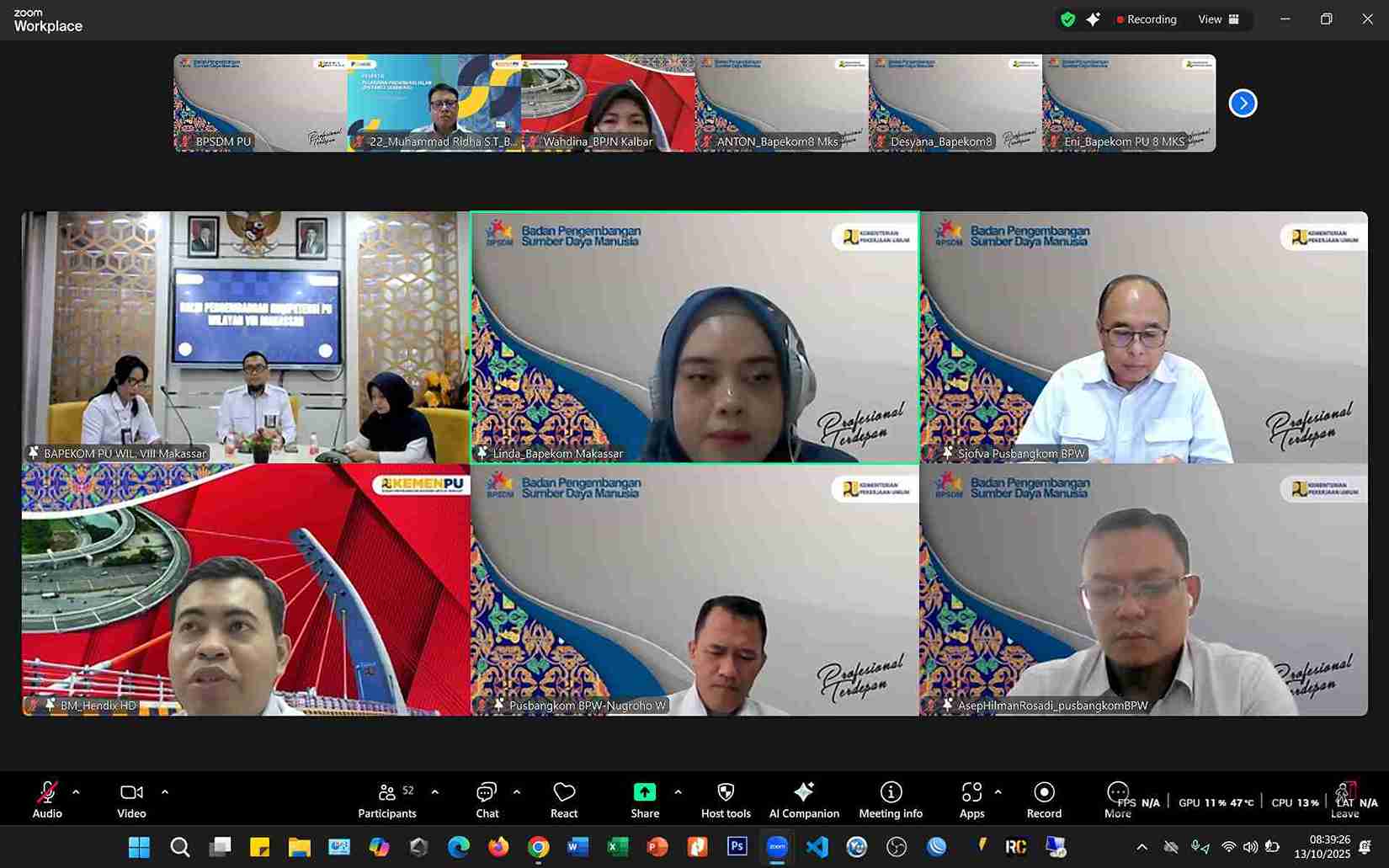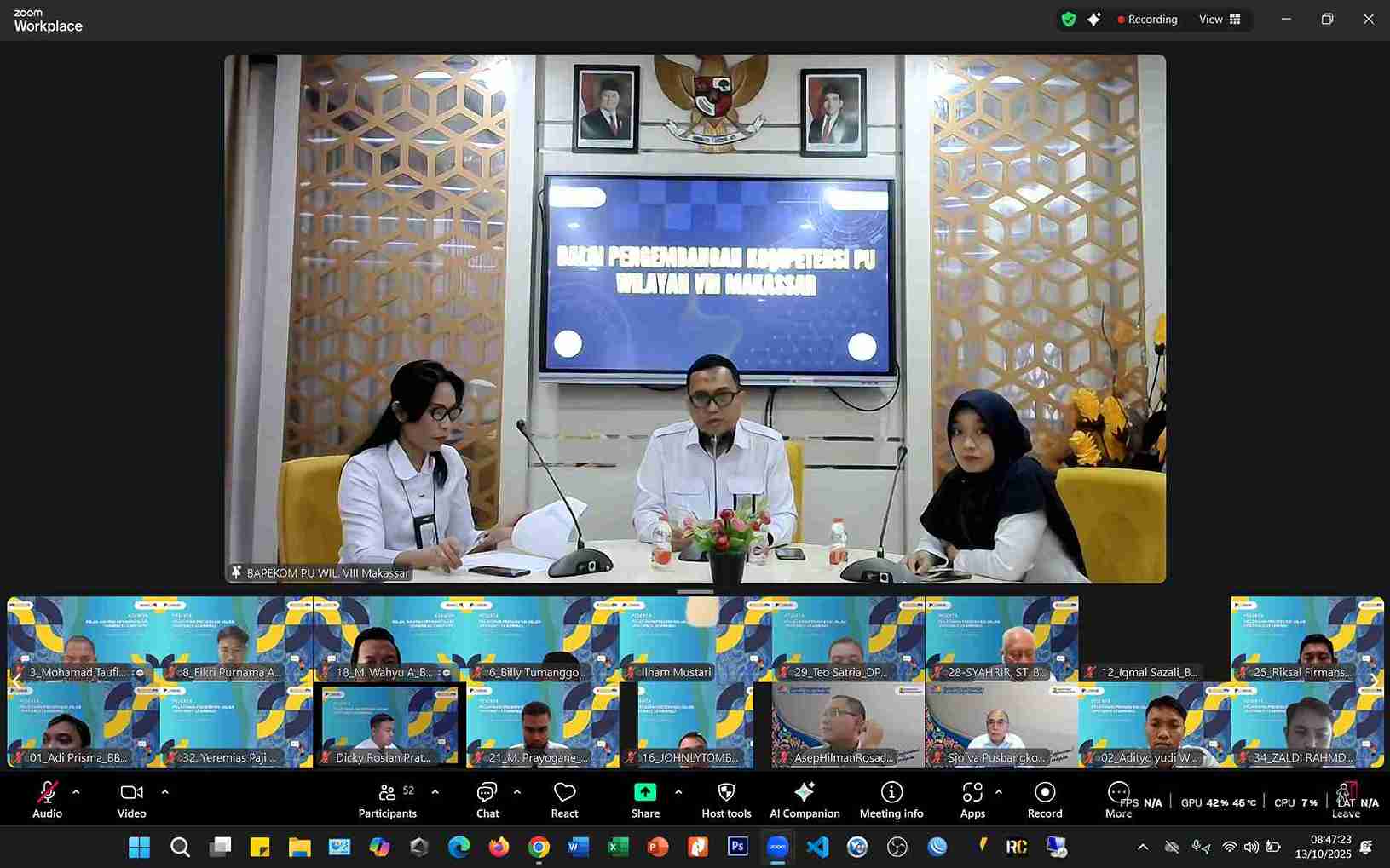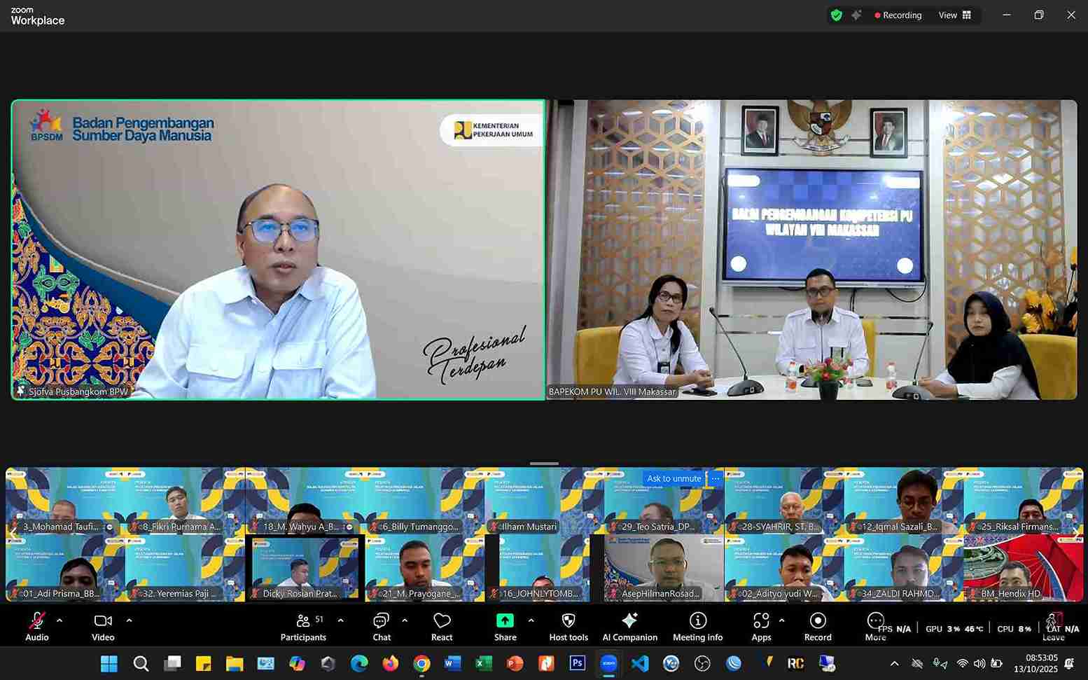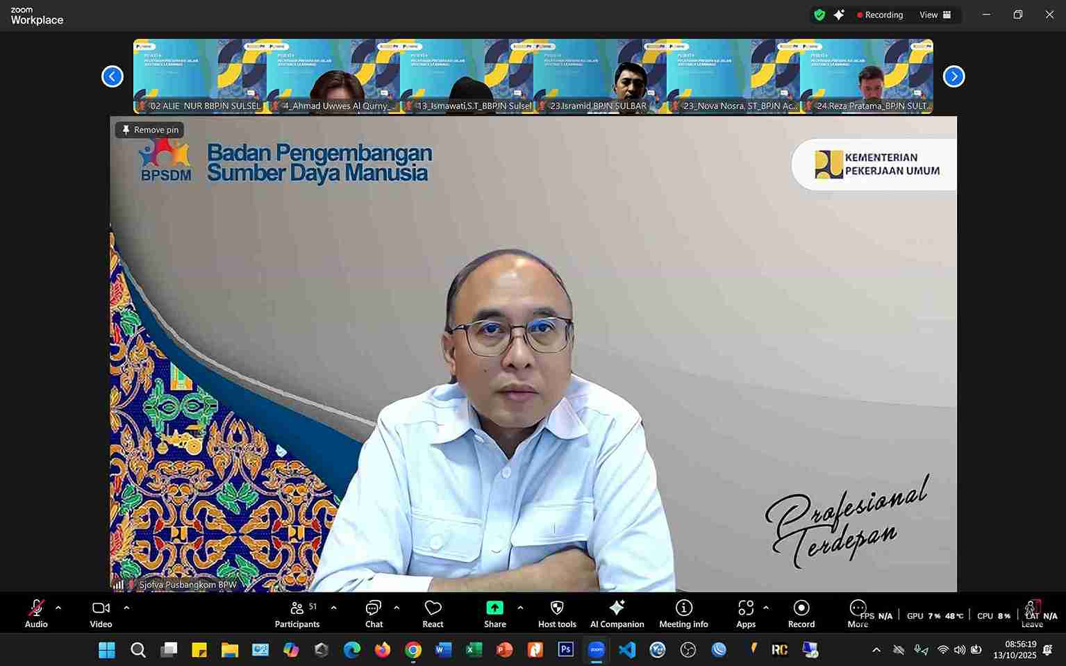 Makassar, 13 Oktober 2025 - Balai Pengembangan Kompetensi (Bapekom) Pekerjaan Umum Wilayah VIII Makassar kembali menjadi tuan rumah penyelenggaraan Pelatihan Preservasi Jalan yang dilaksanakan secara distance learning oleh Badan Pengembangan Sumber Daya Manusia (BPSDM) Kementerian Pekerjaan Umum (PU).